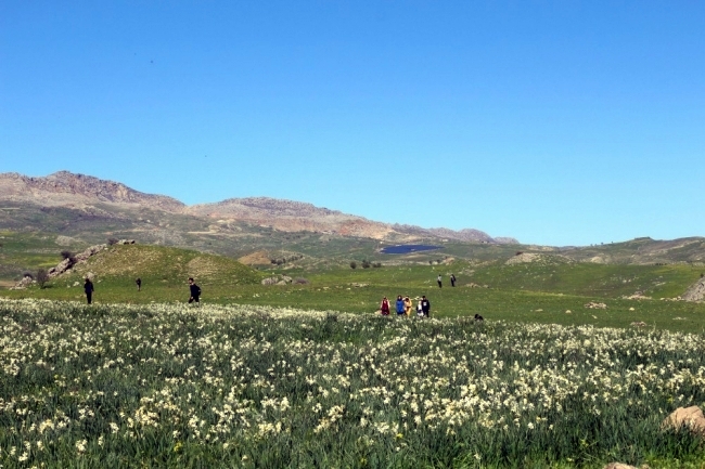Gerger’e ilçesine bağlı Üçkaya köyünde bulunan yaban nergisleri yerli turistlerin akınına uğruyor.